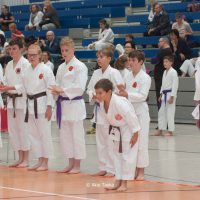 In Kategorie J3 startete Franz X., war aber in der Kata zu aufgeregt und hatte einen kleinen Patzer in der Heian Godan. Das reichte leider, die Vorrunde nicht zu überstehen. Im Kumite, hier gab es eine Planänderung – statt Jiyu Ippon Kumite war für die ab 12jährigen Freikampf dran, schlug er sich tapfer, kassierte kurz vor Kampfende einen heftigen Tritt in die Leisten und schied aus. Letzte Wettkämpfe der Nachwuchsmeisterschaft waren die Kategorie NH3 mit Franz H. und Mirsad. Während Franz die Vorrunde überstand, schied Mirsad da leider schon aus. Im anschließenden Punktesystem passierte ein Deja vu zum Pool 4 in Kategorie K1. Franz zeigte eine starke Bassai Dai, die nach Punkten leider nur zu Platz 3 reichte. Im Kumite konnten beide leider keinen Sieg erringen, lieferten aber sehr gute Kämpfe ab. Im anschließenden Team-Kumite mussten sie sich dem Siegerteam geschlagen geben und wurden zweiter.